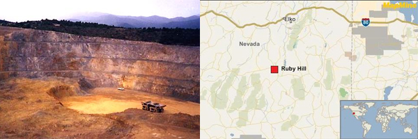 The Ruby Hill mine is located on the Battle Mountain/Eureka gold trend, less than one kilometer from the town of Eureka and 193 kilometres south of the Goldstrike Property.Mined intermittently from 1860 up to the 1980s, the Ruby Hill mining area then sat dormant for a number of years. In 1997, Homestake Mining Company sought and received a permit to establish on open-pit mine at the old mine site. In 2001, Barrick acquired the mine through a merger with Homestake. Mining Method: open pit Commodity: Gold Estimated Mine Life(yrs): To 2019 Reserves/Resources: Gold - 978 koz gold (Dec 31, 2011, proven & probable reserves) Products: Gold – 127 koz in 2011 Owner: Barrick Gold Corporation country/region: UNITED STATES Continent: North America